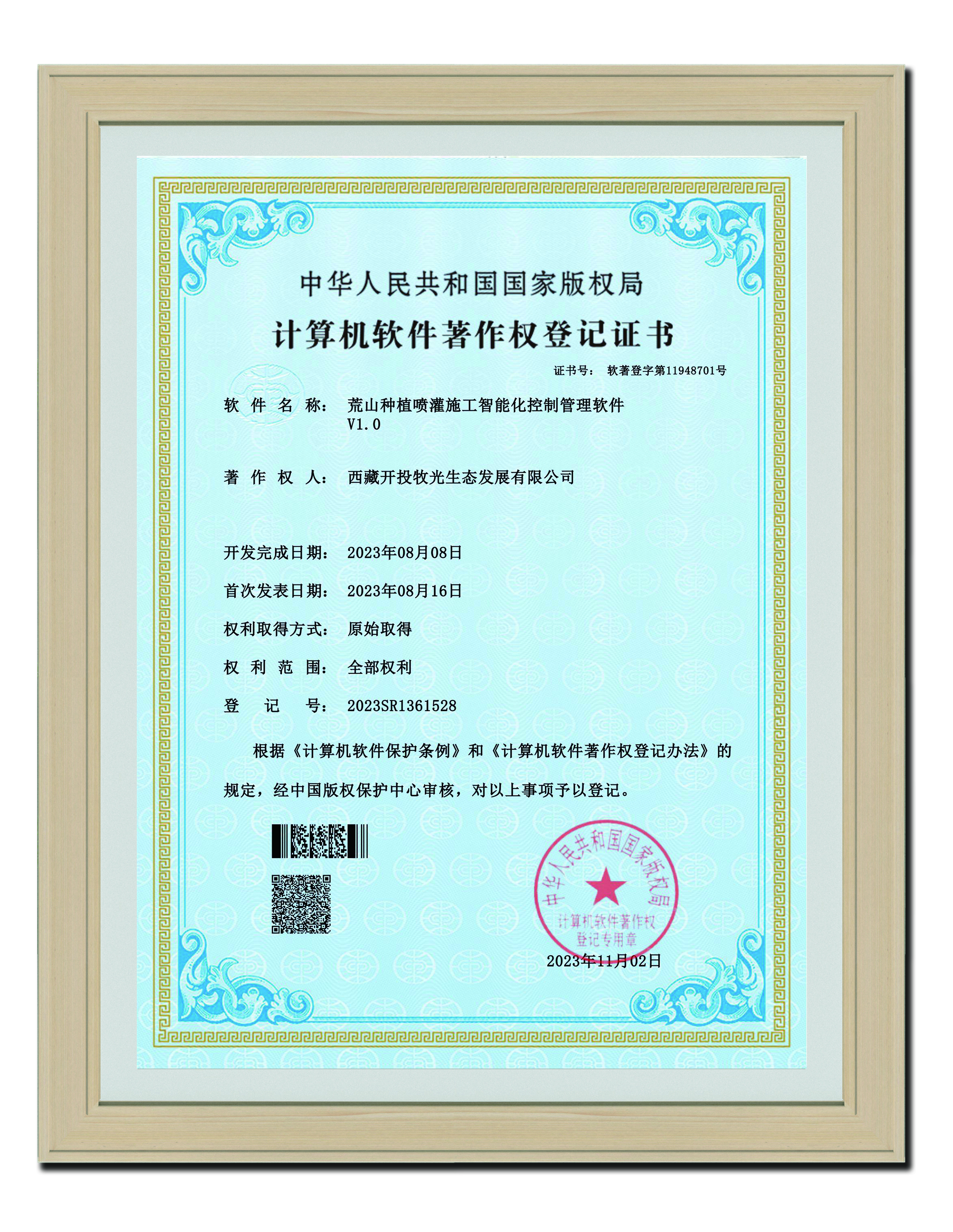 2023年11月2日 l荒山種植噴灌施工智能化控制管理系統(tǒng)V1.0