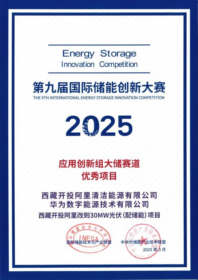 捷報(bào)傳來(lái)丨阿里改則光伏項(xiàng)目獲國(guó)際儲(chǔ)能創(chuàng)新大賽優(yōu)秀項(xiàng)目獎(jiǎng)