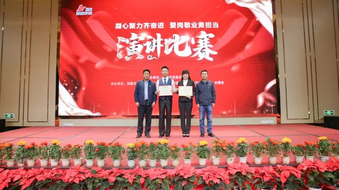 區(qū)屬國(guó)有企業(yè)領(lǐng)導(dǎo)嘉賓,總部及各基層單位干部職工代表現(xiàn)場(chǎng)觀摩了演講比賽