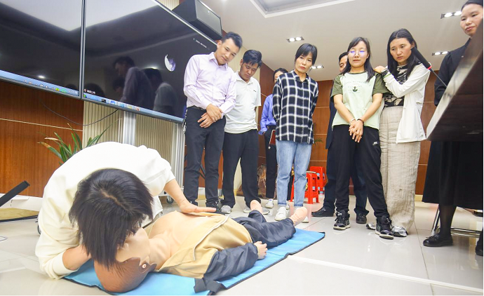 培訓(xùn)過程中,導(dǎo)師通過示范指導(dǎo)、疑問解答、模擬訓(xùn)練等方式,著重演示了海姆立克急救法、心肺復(fù)蘇操作、防震減災(zāi)地震自救以及創(chuàng)傷救護(hù)等現(xiàn)場救護(hù)操作方法,著重強(qiáng)調(diào)了應(yīng)急救護(hù)“黃金四分鐘”及心肺復(fù)蘇胸外按壓的至關(guān)重要性,全體參訓(xùn)人員在導(dǎo)師的指導(dǎo)下對所學(xué)項(xiàng)目進(jìn)行模擬練習(xí),對不規(guī)范的流程與動(dòng)作,進(jìn)行糾正,確保參訓(xùn)人員真正掌握應(yīng)急救護(hù)技術(shù)。