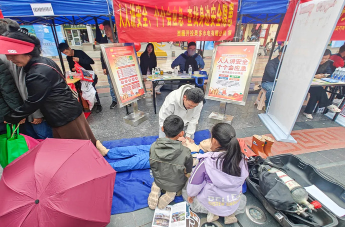 6月16日,西藏開投果多水電公司積極響應昌都市安全生產(chǎn)委員會辦公室及昌都市應急管理局邀請,參加昌都市“人人講安全、個個會應急——查找身邊安全隱患”為主題的安全宣傳咨詢?nèi)栈顒??;顒蝇F(xiàn)場,果多水電公司向市民發(fā)放了安全用電手冊,積極普及安全用電知識,現(xiàn)場講解了各電壓等級驗電棒、三相短路接地線、高壓拉閘桿及正壓式空氣呼吸器、五點式安全帶等多種安全設(shè)備相關(guān)知識,并開展了心肺復蘇模擬器實操演示,吸引了眾多市民駐足觀摩,部分市民還積極參與了心肺復蘇模擬實操。
