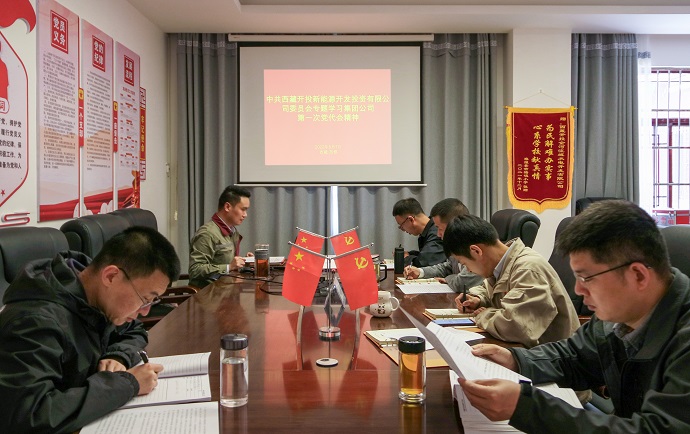 會(huì)議要求,一要深刻認(rèn)識(shí)集團(tuán)公司第一次黨代會(huì)的重大意義和豐富內(nèi)涵,把學(xué)習(xí)好、宣傳好、貫徹好黨代會(huì)精神作為當(dāng)前一段時(shí)間最大的政治任務(wù),迅速在新能源公司上下掀起學(xué)習(xí)黨代會(huì)精神的熱潮。通過黨委理論學(xué)習(xí)中心組集中學(xué)習(xí)、支部會(huì)議、研討會(huì)等多種方式,堅(jiān)持集中學(xué)習(xí)和個(gè)人自學(xué),通讀報(bào)告與專題研討相結(jié)合,確保學(xué)習(xí)宣傳貫徹取得實(shí)實(shí)在在的效果。二要將學(xué)習(xí)集團(tuán)公司第一次黨代會(huì)精神與改進(jìn)作風(fēng)狠抓落實(shí)工作結(jié)合起來,與按期推動(dòng)吉塘一期20萬(wàn)千瓦光伏項(xiàng)目結(jié)合起來,并以此為主線,所有工作都要往這條主線聚焦。從黨委到各黨支部、各部門逐級(jí)有序深入組織學(xué)習(xí)宣傳貫徹黨代會(huì)精神活動(dòng),確保學(xué)習(xí)貫徹黨代會(huì)精神實(shí)現(xiàn)全覆蓋,確保學(xué)習(xí)一個(gè)不少,人人參與。三要把新能源公司各項(xiàng)工作融于集團(tuán)公司發(fā)展戰(zhàn)略全局考慮,聚焦“四件大事”“四個(gè)確保”,聚力“四個(gè)創(chuàng)建”“四個(gè)走在前列”,切實(shí)把集團(tuán)公司第一次黨代會(huì)精神落實(shí)到新能源公司主責(zé)主業(yè)和今年各項(xiàng)工作目標(biāo)及明年工作超前謀劃之中,推動(dòng)學(xué)習(xí)貫徹往實(shí)里走、往深里走,為助力集團(tuán)公司高質(zhì)量發(fā)展凝聚磅礴力量,在集團(tuán)公司“二次創(chuàng)業(yè)”中以實(shí)績(jī)展現(xiàn)新能源公司新?lián)?dāng)、新作為、新形象。