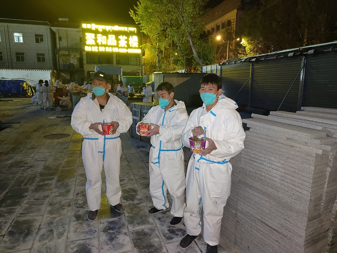 9月15日,接到自治區(qū)國資委及西藏開投集團公司通知,拉薩新建方艙醫(yī)院需工程類人員支援,酒店緊急抽調(diào)工程類專業(yè)人員4人前往支援,從15日21時到次日上午9時完成了支援任務。12個小時的忙碌下來,每個人都是汗流浹背,可沒有人抱怨,沒有人喊苦喊累。