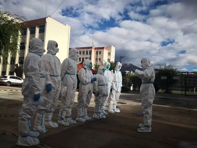 進駐 “疫”線后,集團公司副總經理尼瑪親任志愿服務隊隊長,迅速組建后勤保障組、工作聯(lián)系組、防疫信息組、時事宣傳組,為做好志愿服務疫情防控工作提供組織保障。志愿服務隊各盡其職、團結一心、分工協(xié)作。據統(tǒng)計,截至9月26日,已完成米、面、糌粑等重要物資裝卸、轉運45.98噸,完成新冠病毒核酸檢測7530人次,對陽性居住區(qū)進行消毒消殺12戶。
