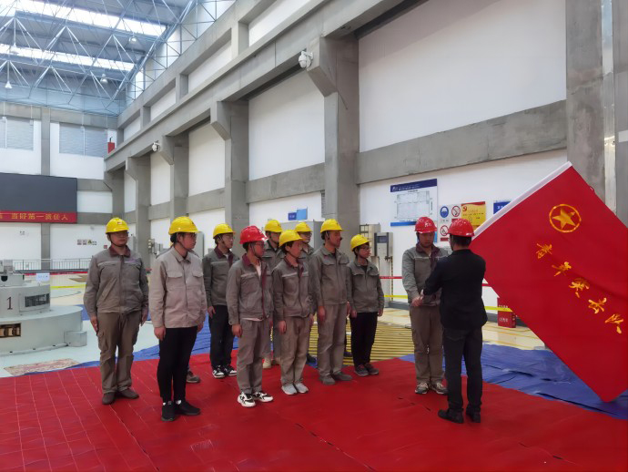 會議全面部署各項檢修任務,動員現(xiàn)場參會人員統(tǒng)一思想、凝聚共識、明確任務、落實責任,全力以赴打好本次檢修攻堅戰(zhàn)。動員結束后,覺巴水電廠為“青年突擊隊”舉行授旗儀式。