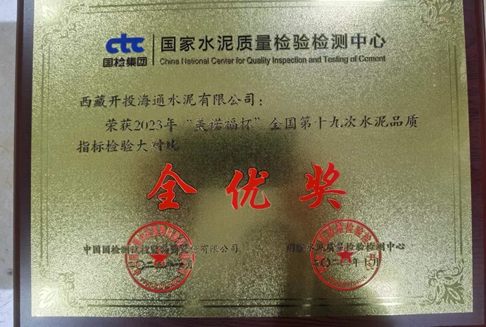 西藏開投海通水泥公司喜獲全國水泥檢驗大對比“全優(yōu)獎”