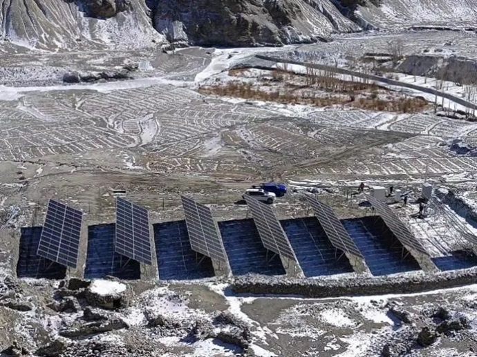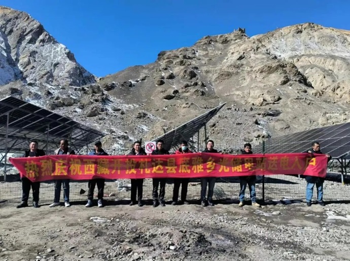 據了解,該示范項目位于阿里地區(qū)扎達縣底雅鄉(xiāng)魯巴村,地處偏遠的邊境區(qū)域,海拔3869米,基礎設施建設非常薄弱,無市電供應。之前村民用電主要依靠小型光伏戶用電源設備,僅能滿足日常照明及通訊設備的充電,電力保障能力十分有限。該項目工期緊張,建設者們克服高寒高海拔、設備采購困難、人員組織困難、大雪封路等重重困難,在短短的2個月內完成光伏、儲能、變電場區(qū)施工安裝,和輸電線路架設及系統(tǒng)發(fā)電調試工作,在春節(jié)藏歷新年前順利實現(xiàn)投運。目前,該項目在光照充足條件下可做到24小時無間斷運行供電,保障了當?shù)卮迕袢旌蛴秒娦枨蟆?/div>