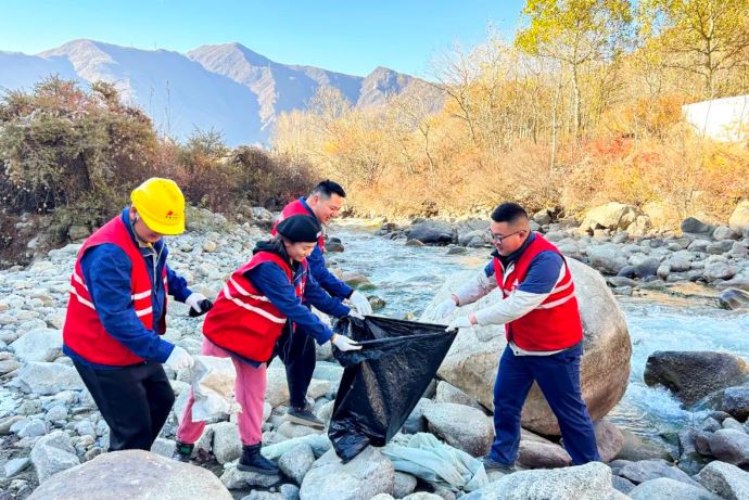 志愿者們在索朗溝積極開展垃圾清理工作,并為周邊群眾發(fā)放安全知識(shí)手冊,耐心講解用電安全及防災(zāi)減災(zāi)常識(shí),用實(shí)際行動(dòng)傳遞了水電人的愛心。