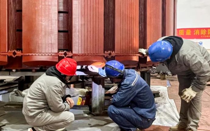 在檢修工作中黨員先鋒隊充分發(fā)揮專業(yè)優(yōu)勢,在精細檢修、精益求精中沖鋒在前,黨員技術(shù)骨干帶頭對重要部位、重要設(shè)備進行逐一檢查,測量相關(guān)數(shù)據(jù),對磨損部件提出修復(fù)意見和改造方案,切實提升設(shè)備性能;在電氣設(shè)備檢修過程中,黨員主動承擔勵磁系統(tǒng)、繼電保護裝置等檢測任務(wù),運用精密儀器進行全面絕緣檢測與參數(shù)調(diào)試,憑借豐富經(jīng)驗和精湛技術(shù),及時發(fā)現(xiàn)并處理多處潛在隱患點;在水工建筑物檢查方面,黨員積極協(xié)助開展蝶閥、盤型閥及尾水閘門等過水部件密封檢查,并對發(fā)電廠房尾水設(shè)施進行細致排查,經(jīng)檢查目前水工設(shè)施基本完好。