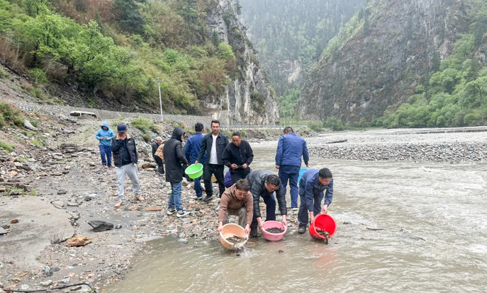 在放流活動(dòng)現(xiàn)場(chǎng),共投放拉薩裸裂尻、異齒裂腹魚各三千余尾,將有效補(bǔ)充流域野生魚類資源,對(duì)改善水生生物種群、維系易貢藏布流域生態(tài)鏈完整具有重要意義。