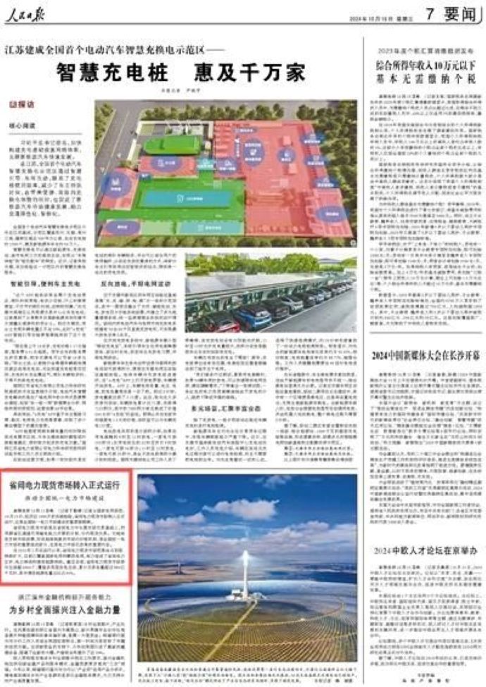 人民日?qǐng)?bào):省間電力現(xiàn)貨市場(chǎng)轉(zhuǎn)入正式運(yùn)行 推動(dòng)全國(guó)統(tǒng)一電力市場(chǎng)建設(shè)