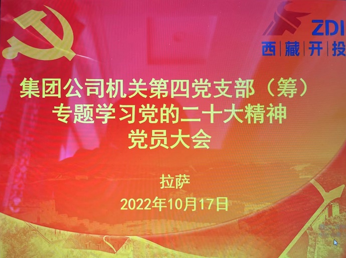 10月17日下午,中共西藏開(kāi)發(fā)投資集團(tuán)有限公司機(jī)關(guān)第四支部委員會(huì)組織全體黨員開(kāi)展黨的二十大精神首次專題學(xué)習(xí),重點(diǎn)學(xué)習(xí)討論黨的二十大報(bào)告。集團(tuán)公司黨委委員、副總經(jīng)理、工會(huì)主席、機(jī)關(guān)黨委書(shū)記溫勇同志以普通黨員身份參加學(xué)習(xí)。
