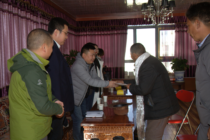 柳梧村村委達(dá)瓦書記對大家的到來表示熱烈的歡迎,對西藏開投集團(tuán)組織開展這項(xiàng)工作表示贊賞。他說:“西藏開投集團(tuán)是區(qū)管國有企業(yè)中第一家組織在職黨員進(jìn)我們社區(qū)開展慰問的企業(yè),意義重大,效果明顯。西藏開投集團(tuán)成立雖晚,但在積極參與社會主義新西藏建設(shè)中邁的步伐很大,工作做的實(shí)在,體現(xiàn)了西藏開投集團(tuán)的責(zé)任擔(dān)當(dāng)。通過今天的活動,不但加深了雙方的熟悉和了解,而且也讓柳梧村的牧民百姓,尤其是受到西藏開投集團(tuán)特殊慰問關(guān)懷的2戶老黨員更加感受到了黨的溫暖和關(guān)愛,更加會珍惜這個(gè)來之不易的幸福生活”。