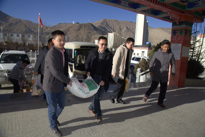 當(dāng)天的慰問活動,西藏開投集團(tuán)的黨員同志們還集體參觀了村委設(shè)施,并為村委貧困戶送上了米油等慰問物資,同時(shí)預(yù)祝他們元旦快樂!扎西德勒!
