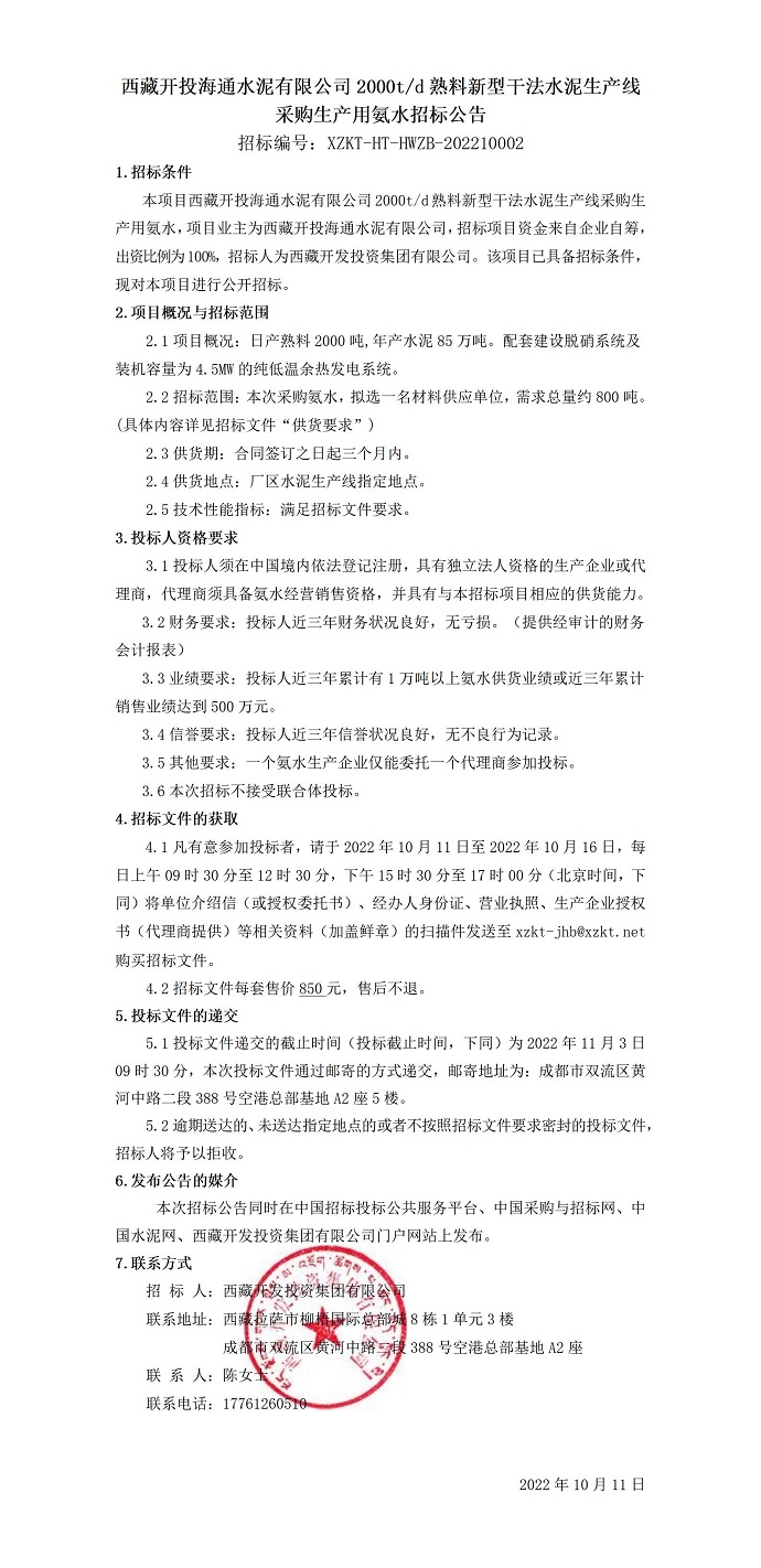 西藏開投海通水泥有限公司2000t/d熟料新型干法水泥生產(chǎn)線