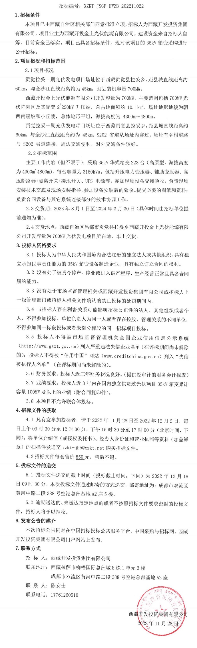 35kV箱變采購招標(biāo)公告
