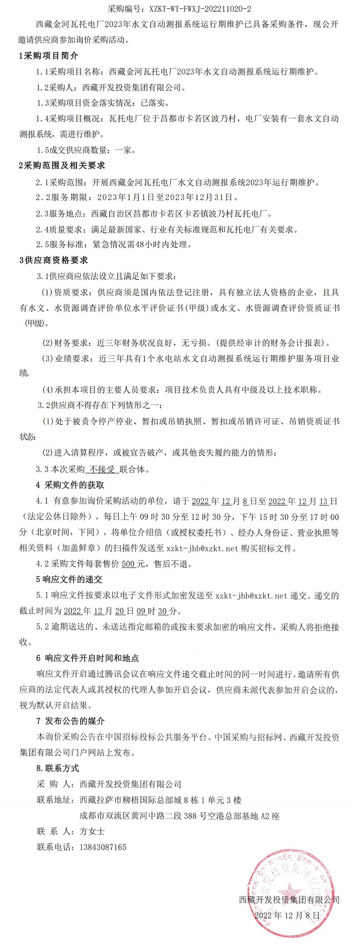 西藏金河瓦托電廠2023年水文自動(dòng)測(cè)報(bào)系統(tǒng)運(yùn)行期