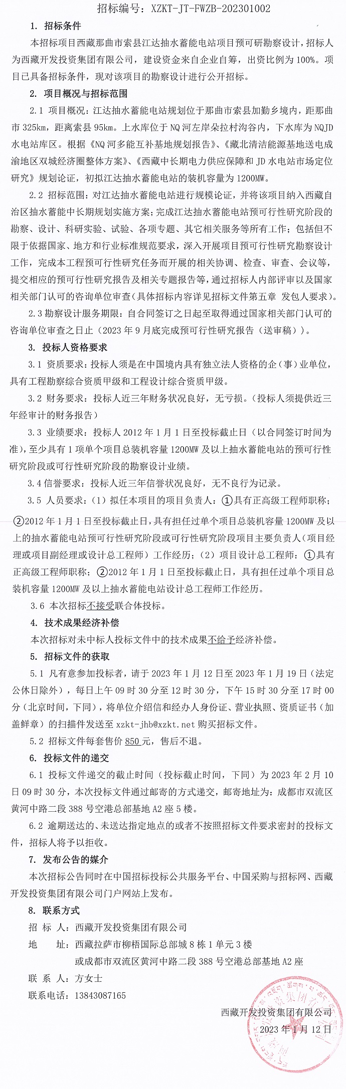 西藏那曲市索縣江達(dá)抽水蓄能電站項(xiàng)目預(yù)可研勘察設(shè)計(jì)招標(biāo)公告
