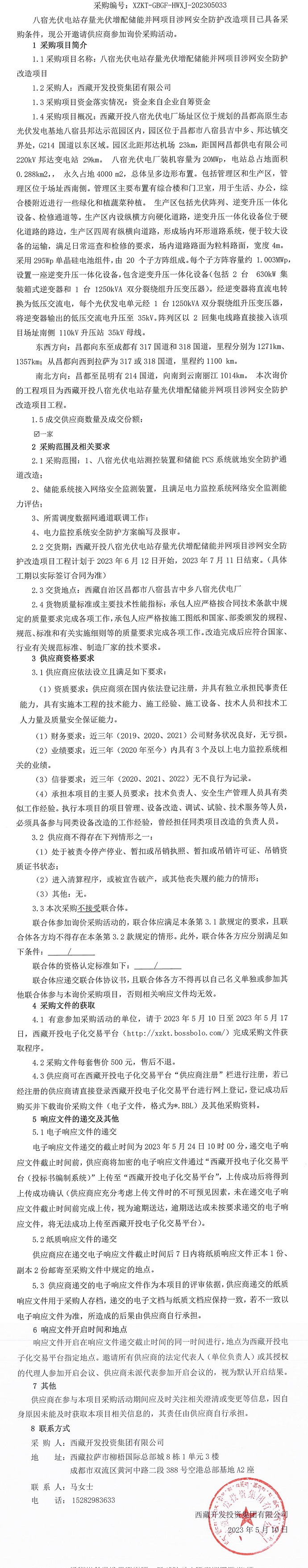 八宿光伏電站存量光伏增配儲(chǔ)能并網(wǎng)項(xiàng)目涉網(wǎng)安全防護(hù)改造項(xiàng)目詢價(jià)采購公告
