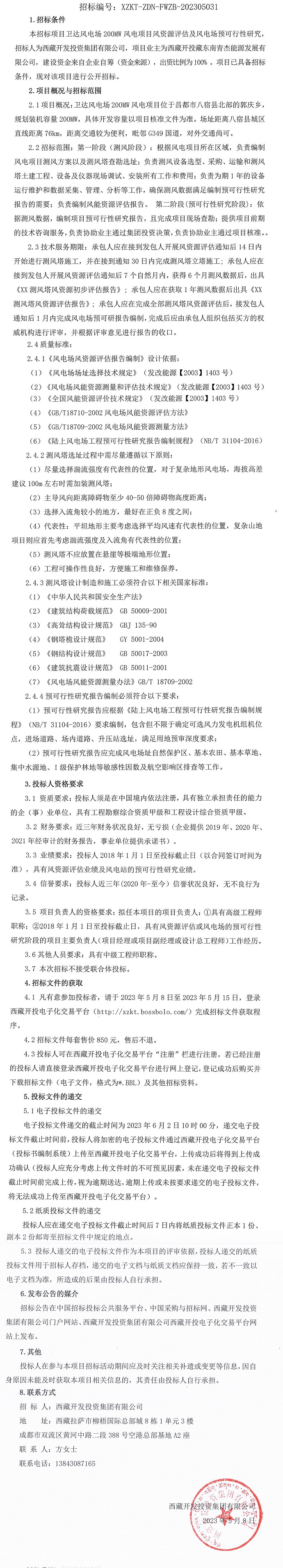 衛(wèi)達(dá)風(fēng)電場200MW風(fēng)電項目風(fēng)資源評估及風(fēng)電場預(yù)可行性研究招標(biāo)公告
