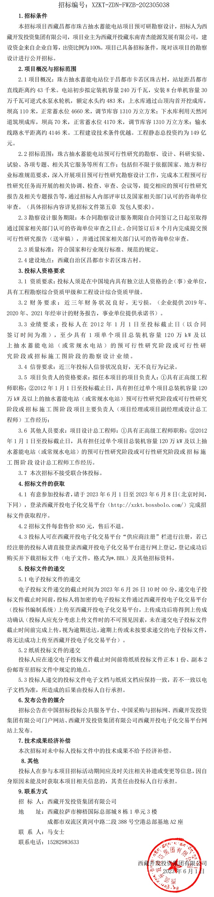 西藏昌都市珠古抽水蓄能電站項目預(yù)可研勘察設(shè)計招標(biāo)公告