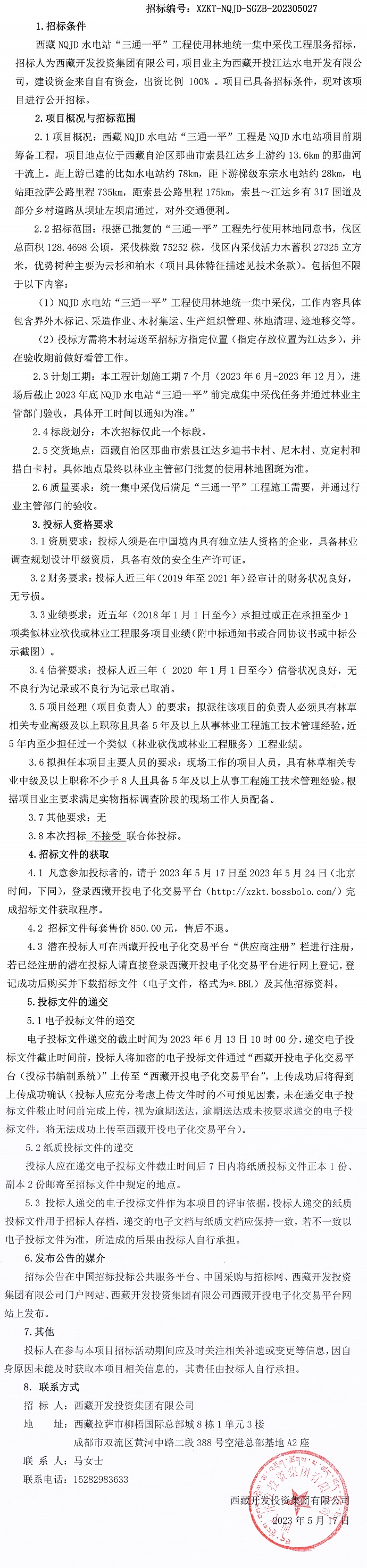 西藏NQJD水電站“三通一平”工程使用林地統(tǒng)一集中采伐