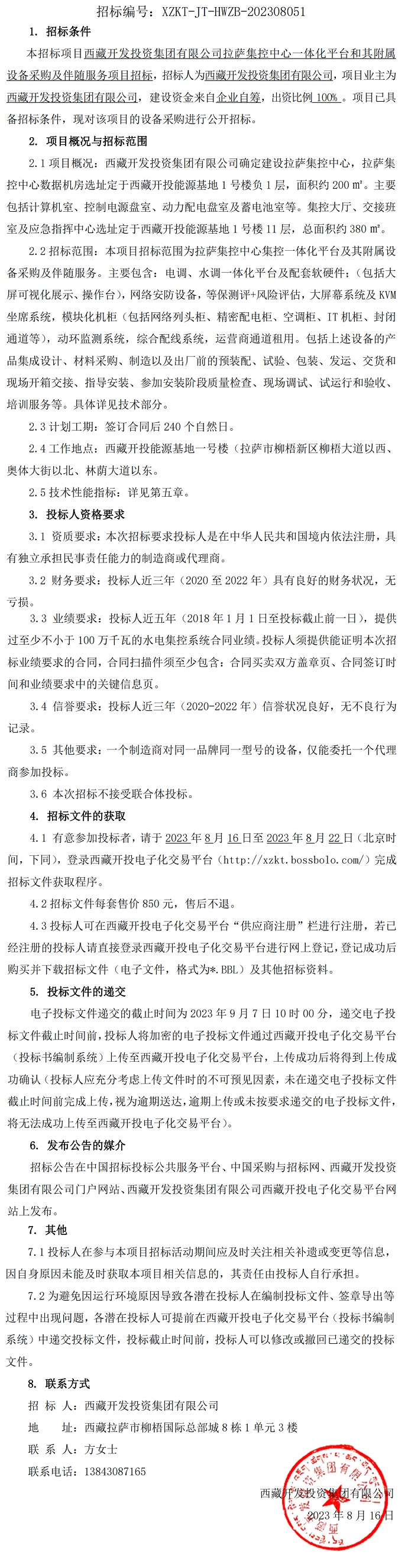 西藏開發(fā)投資集團(tuán)有限公司拉薩集控中心一體化平臺(tái)和