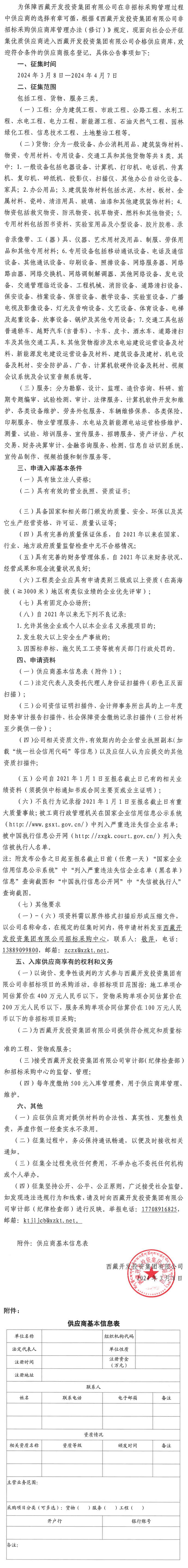 西藏開(kāi)發(fā)投資集團(tuán)有限公司非招標(biāo)采購(gòu)供應(yīng)商人庫(kù)征集公告