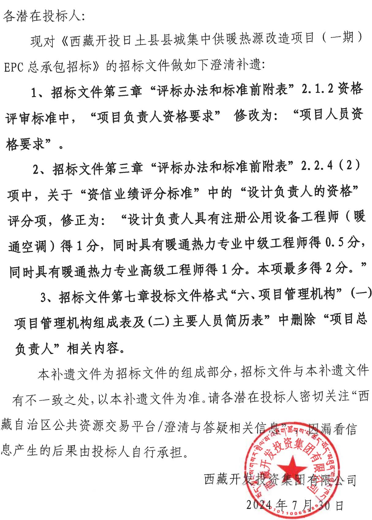 EPC總承包招標(biāo)補(bǔ)遺(01)號