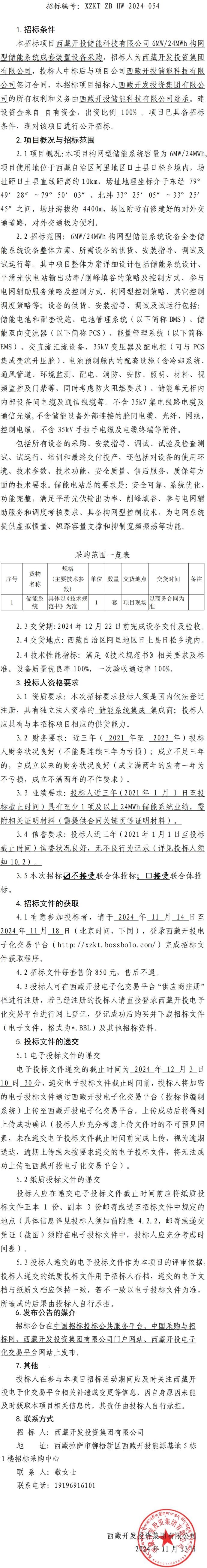 儲能科技6MW/24MWh構(gòu)網(wǎng)型儲能系統(tǒng)成套裝置設備采購招標公告