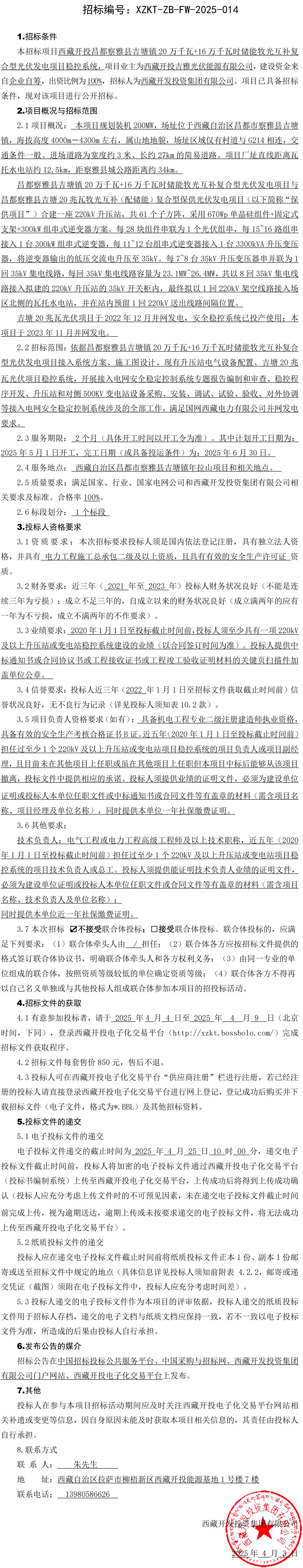 西藏開投昌都察雅縣吉塘鎮(zhèn)20萬千瓦+16萬千瓦時儲能牧光互補復(fù)合型光伏發(fā)電項目穩(wěn)控系統(tǒng)招標公告