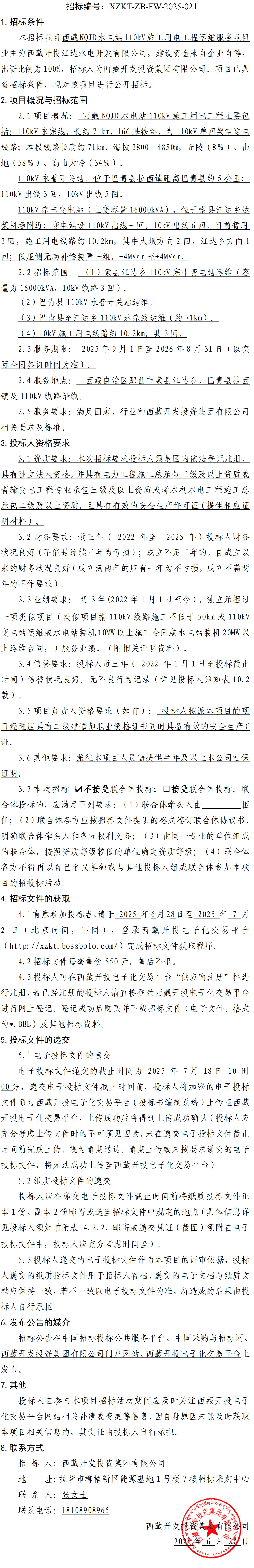 西藏NQJD水電站110kV施工用電工程運維服務(wù)招標(biāo)公告