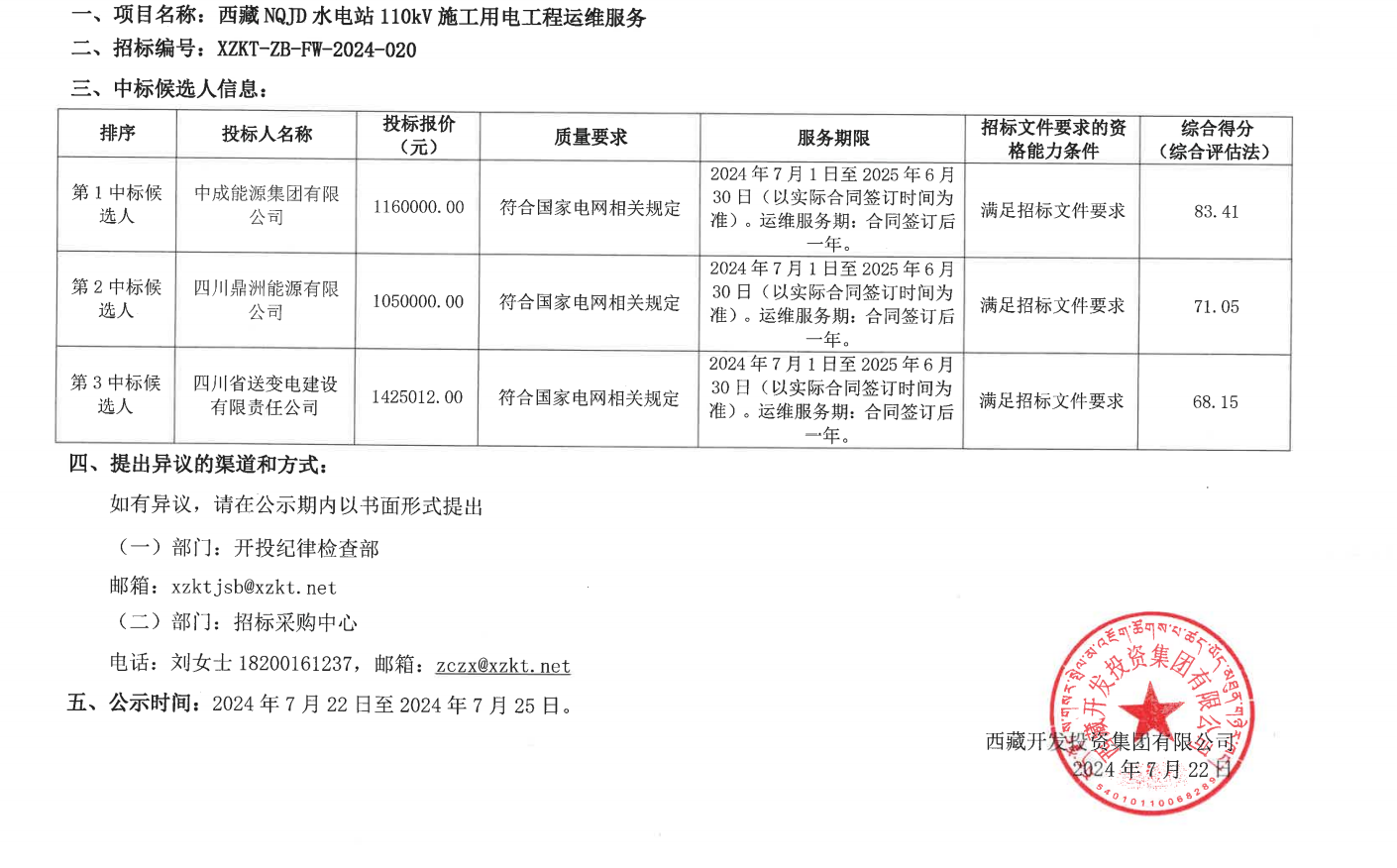 中標候選人公示