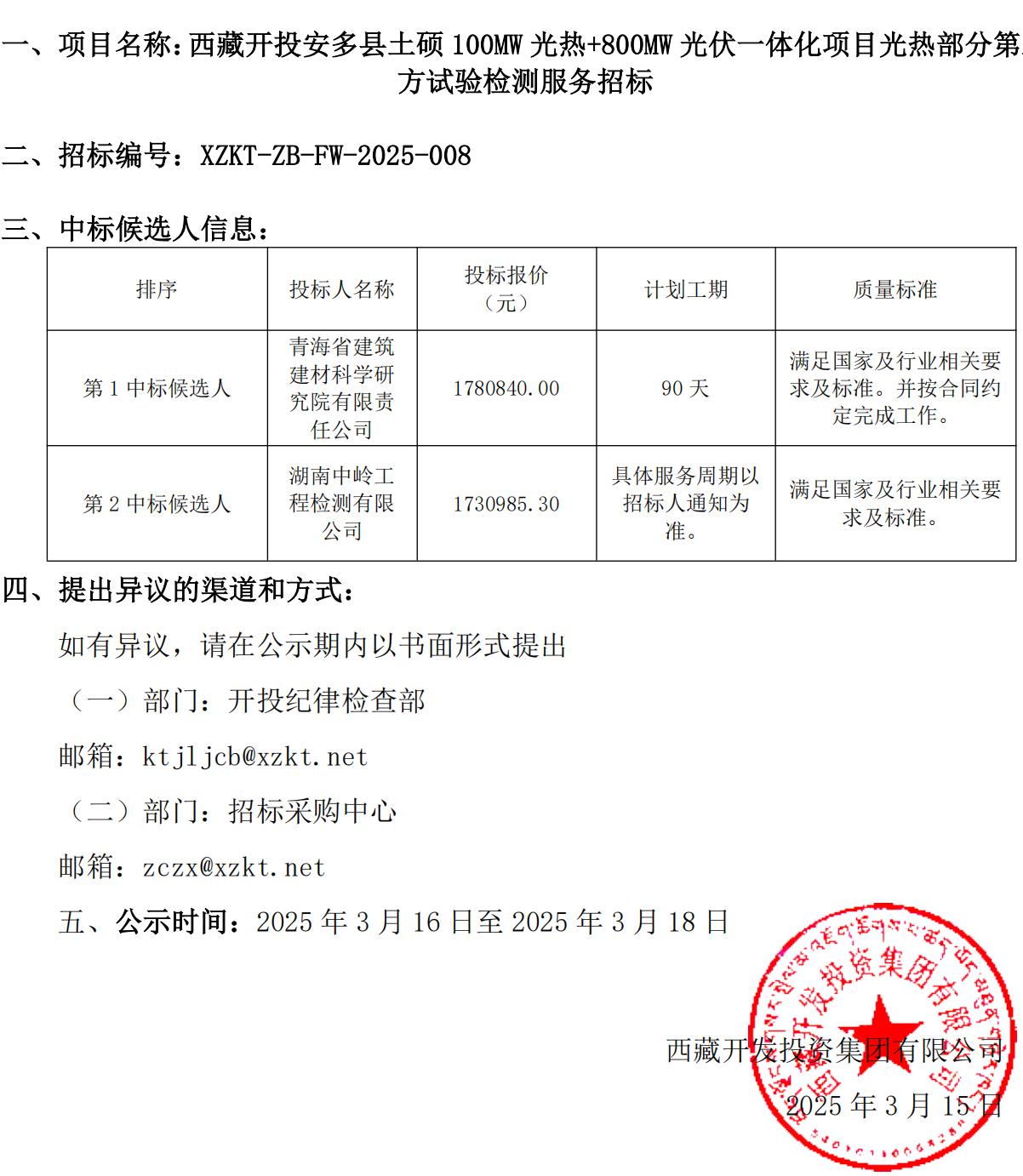 中標(biāo)候選人公示